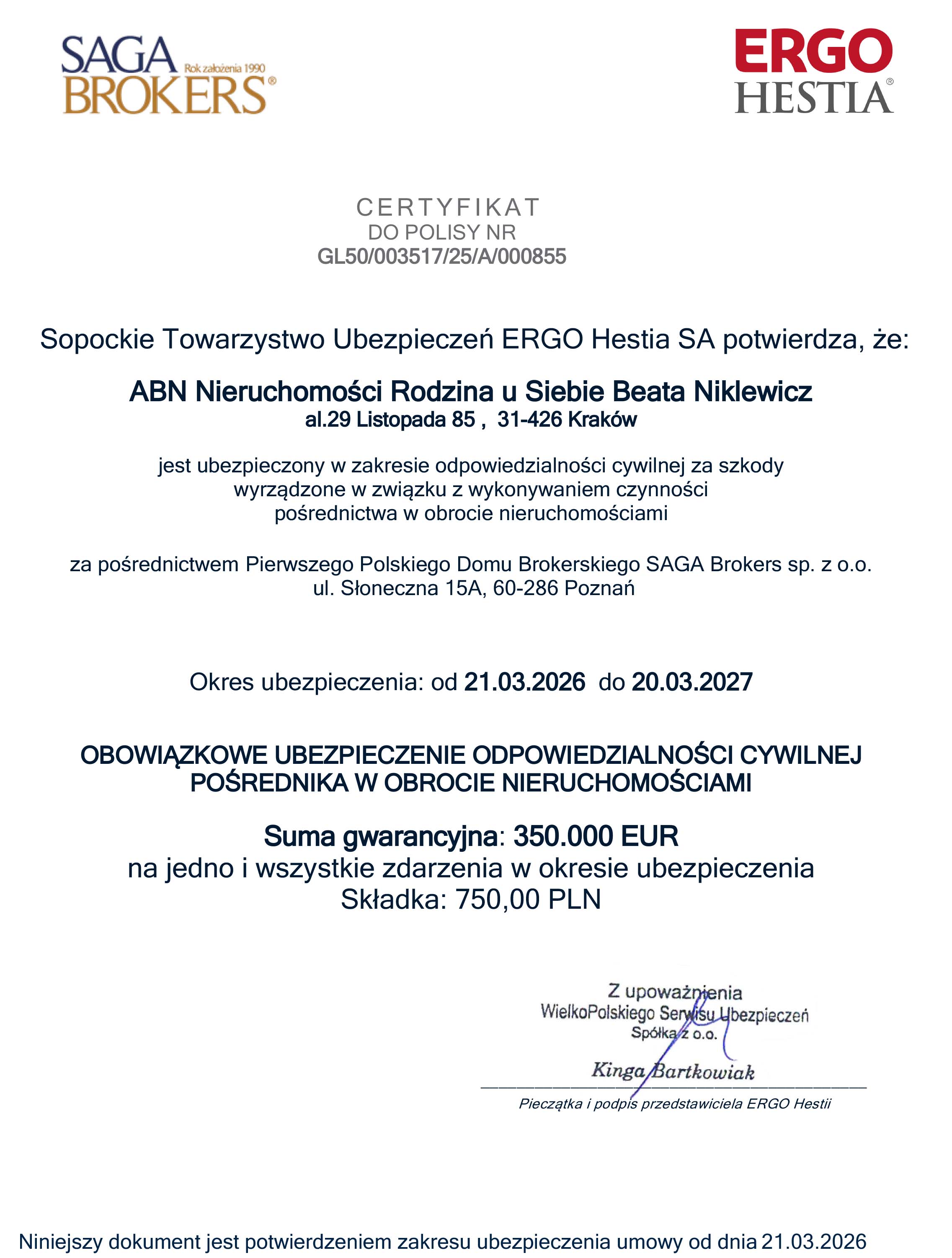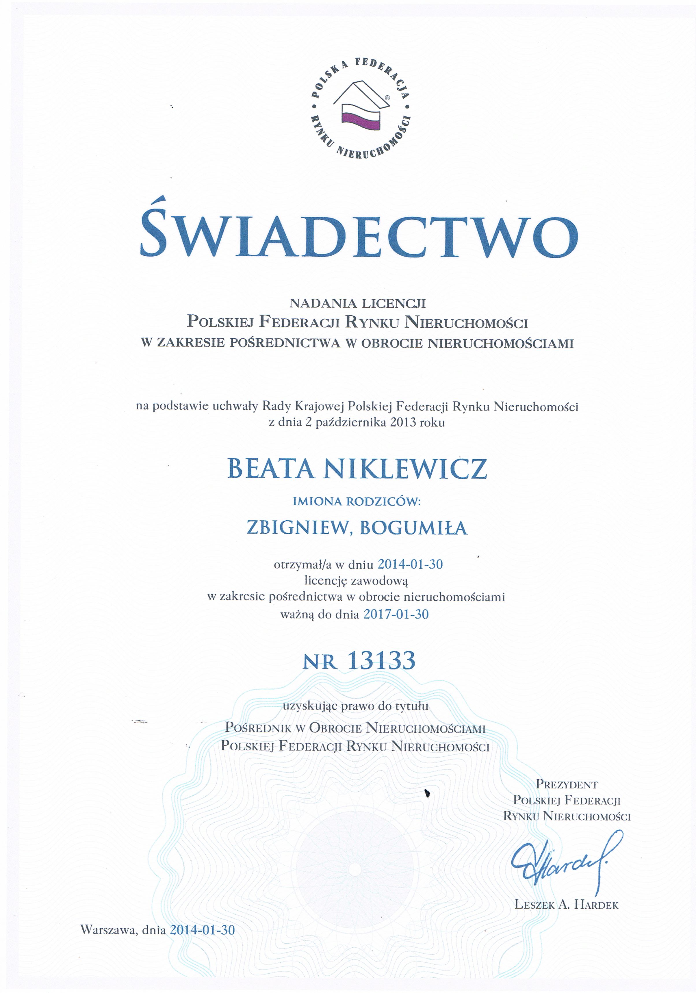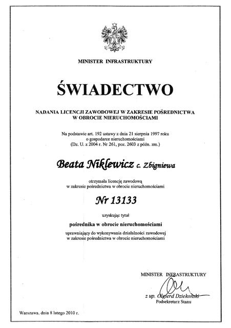 W 2026 roku bezpieczeństwo transakcji na rynku nieruchomości w Krakowie jest priorytetem. Podczas gdy wielu pośredników działa bez żadnych uprawnień, ABN Nieruchomości Rodzina u Siebie legitymuje się prestiżową Licencją Zawodową Pośrednika w Obrocie Nieruchomościami o nr 13133, nadaną przez Ministra Infrastruktury już w 2010 roku. To nie tylko numer – to dowód na posiadanie najwyższych kwalifikacji, które zostały zweryfikowane państwowym egzaminem przed okresem deregulacji zawodu.