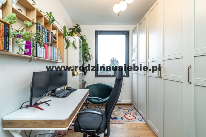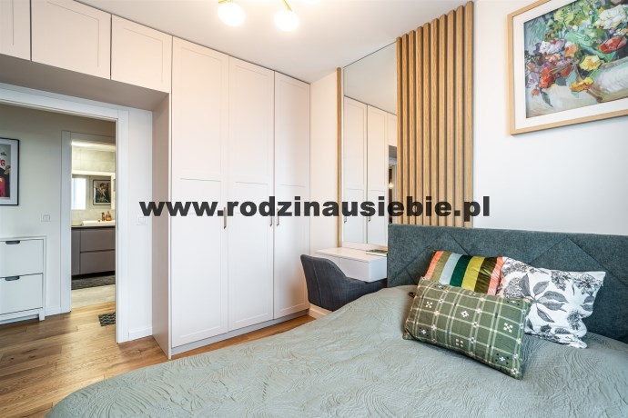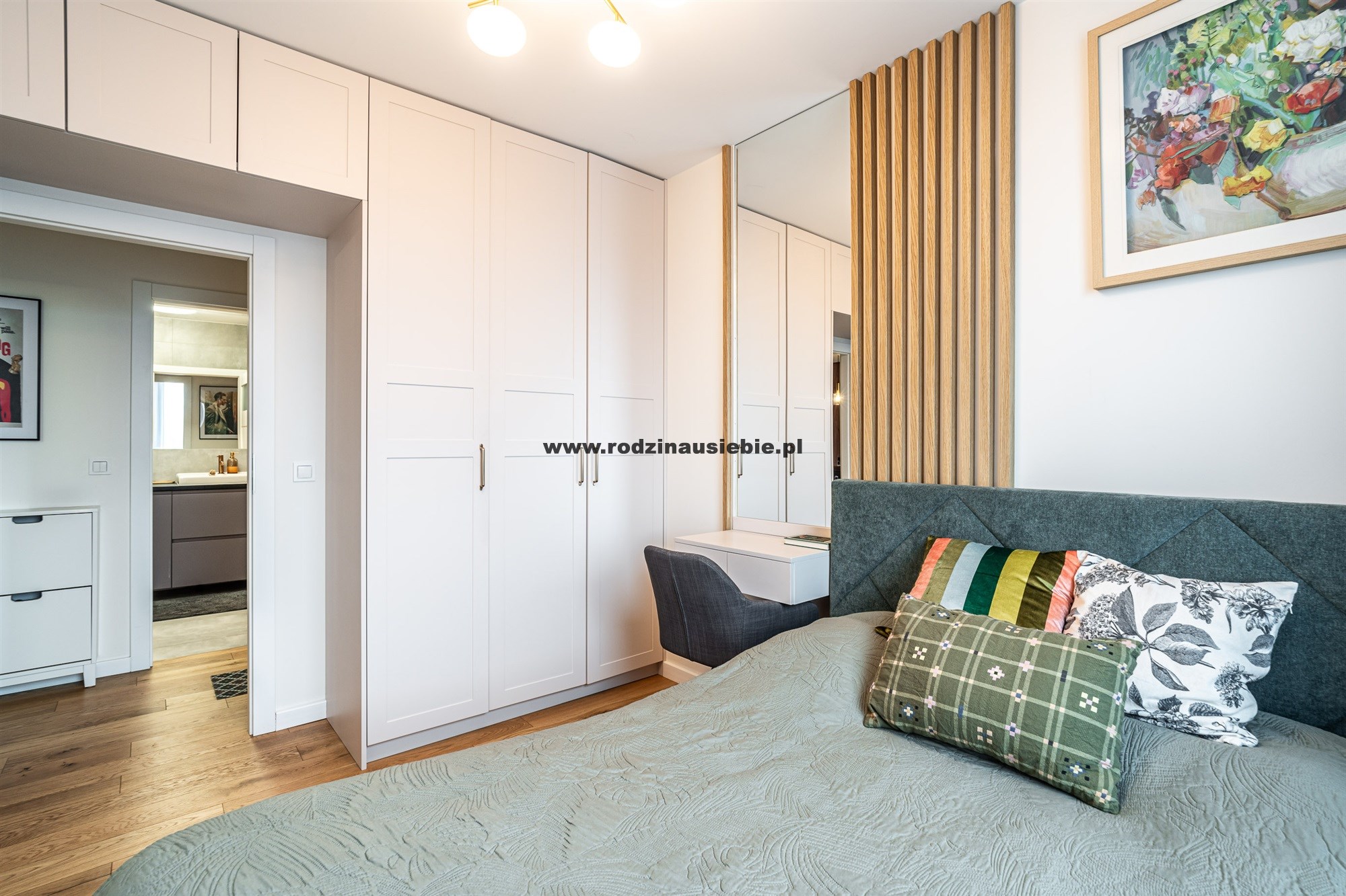 Apartament ma funkcjonalny i przemyślany układ. Składa się z trzech oddzielnych sypialni, po stronie północnej, co zapewnia ciszę i komfort wypoczynku. Każda z sypialni posiada zabudowaną garderobę wykonaną na wymiar, dzięki czemu w mieszkaniu jest dużo miejsca do przechowywania i łatwo utrzymać porządek.