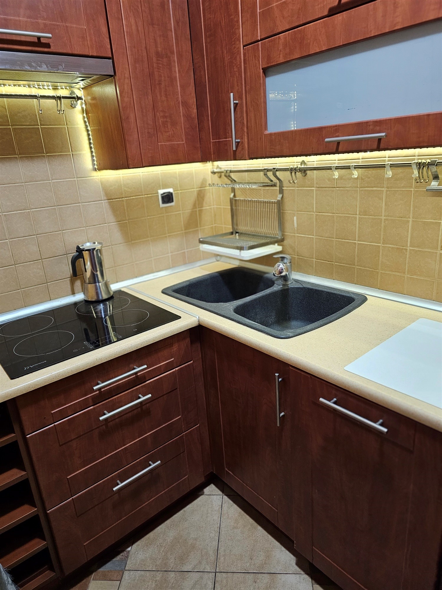 w nowoczesnym apartamentowcu z 2008 roku. Mieszkanie składa się z dwóch osobnych pokoi, przedpokoju, łazienki oraz kuchni w formie aneksu, zamykanej przesuwnymi, lustrzanymi drzwiami — co zapewnia komfort i prywatność.