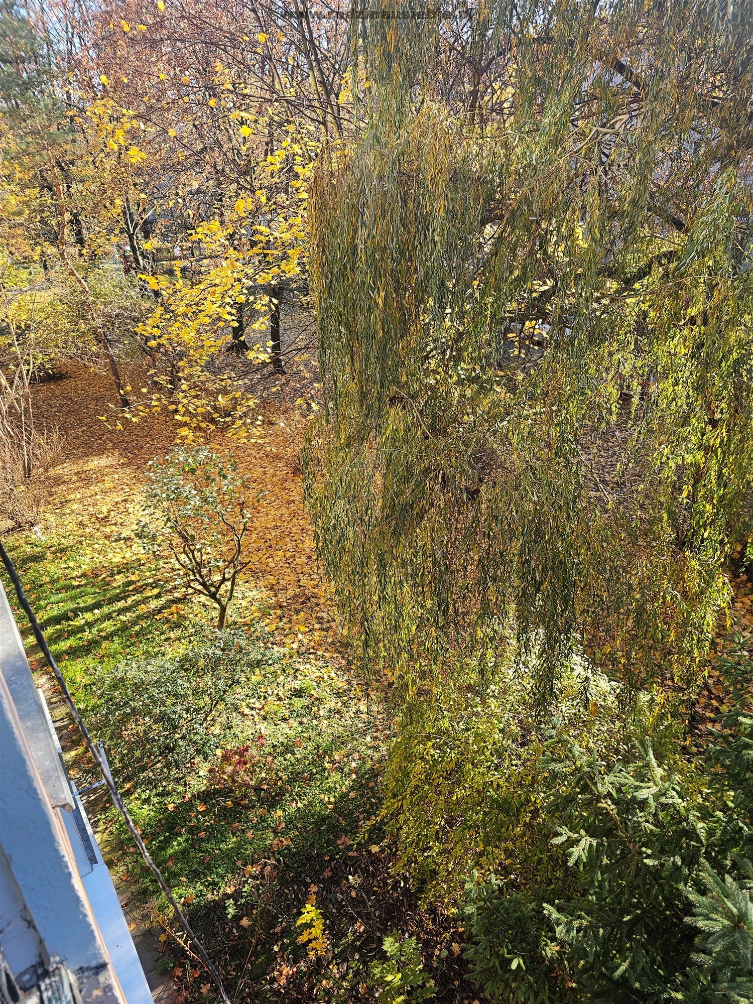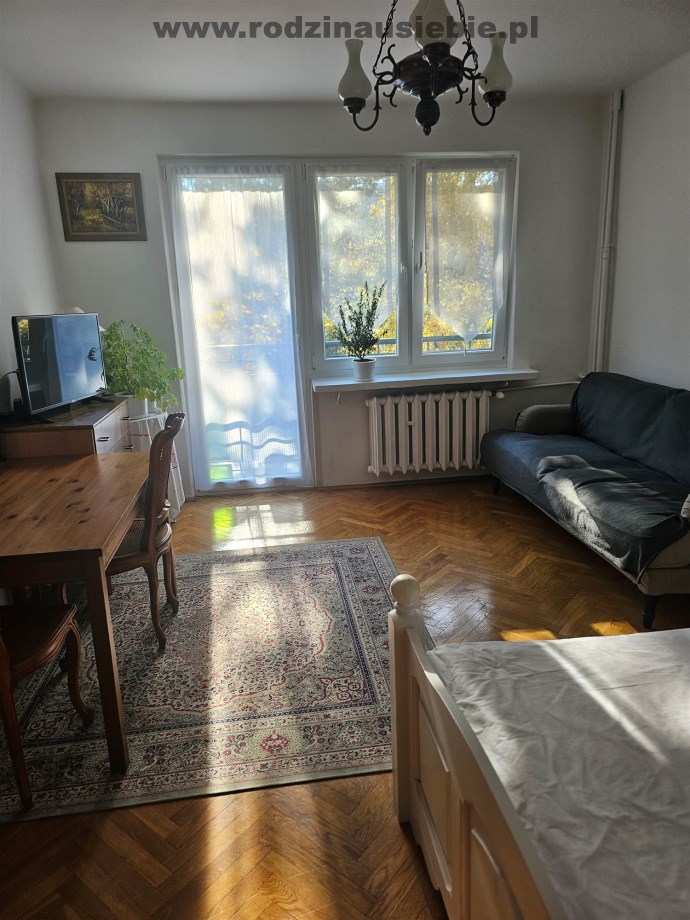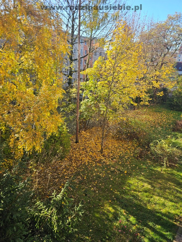Okna z dużego pokoju wychodzą na południe, z balkonu przyjemny widok na zielone tereny.
