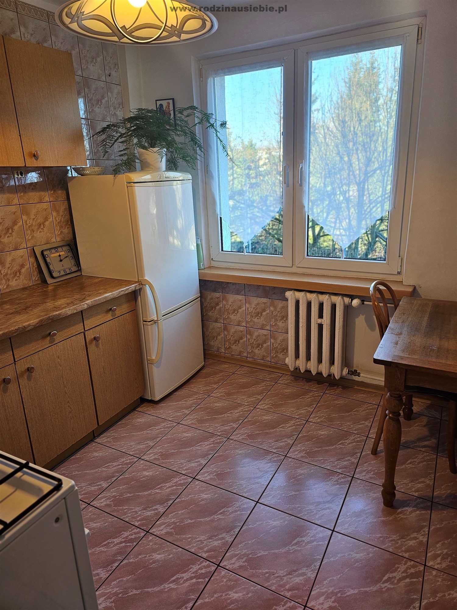 Duża ustawna kuchnia. Na podłogach w pokojach parkiet. Pokoje ustawne,jasne.