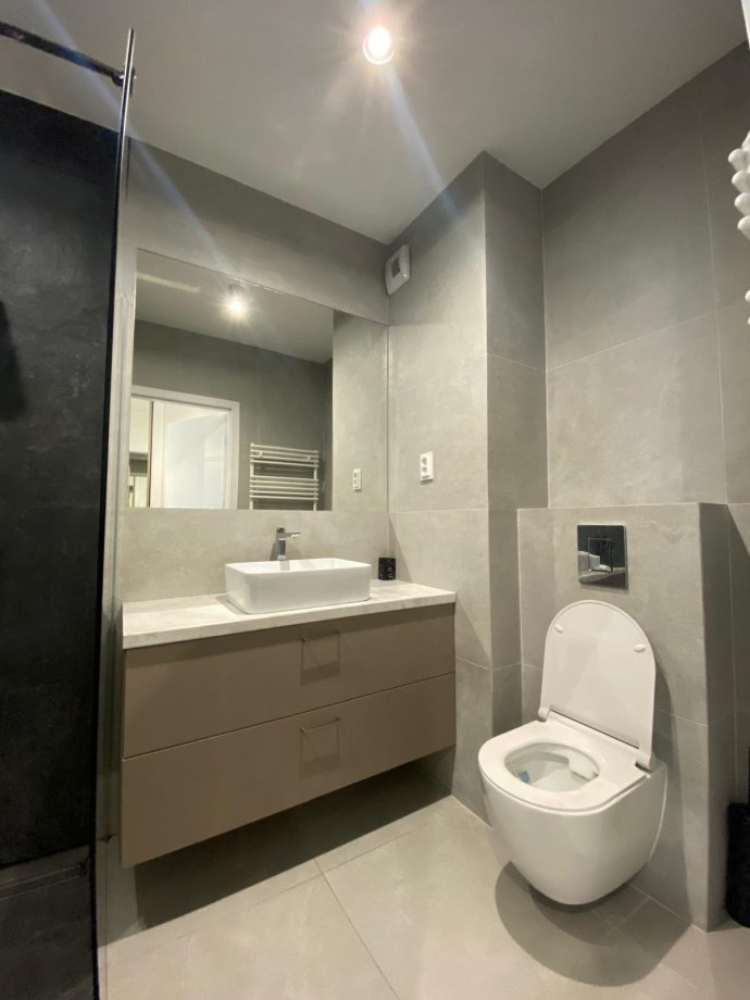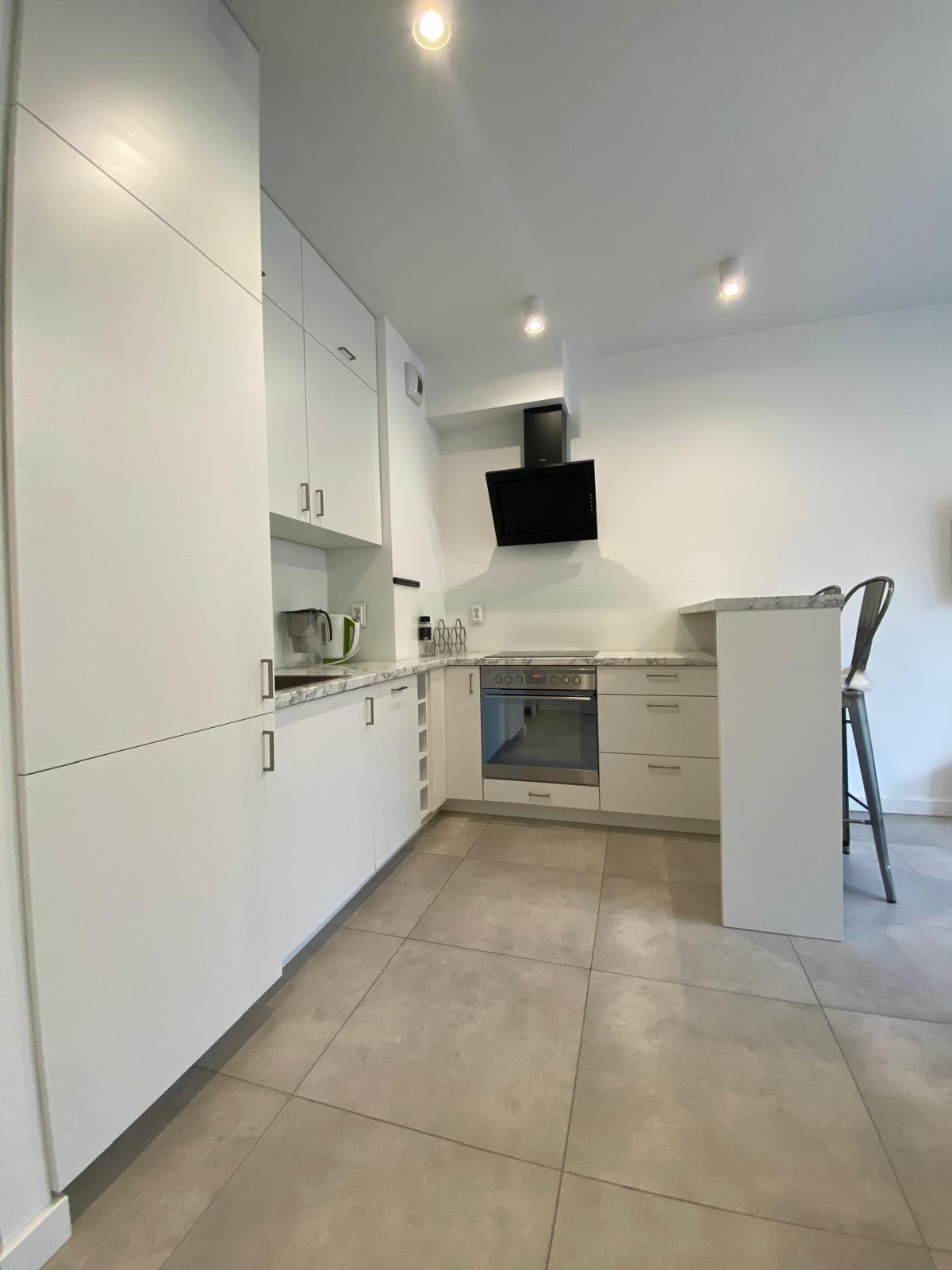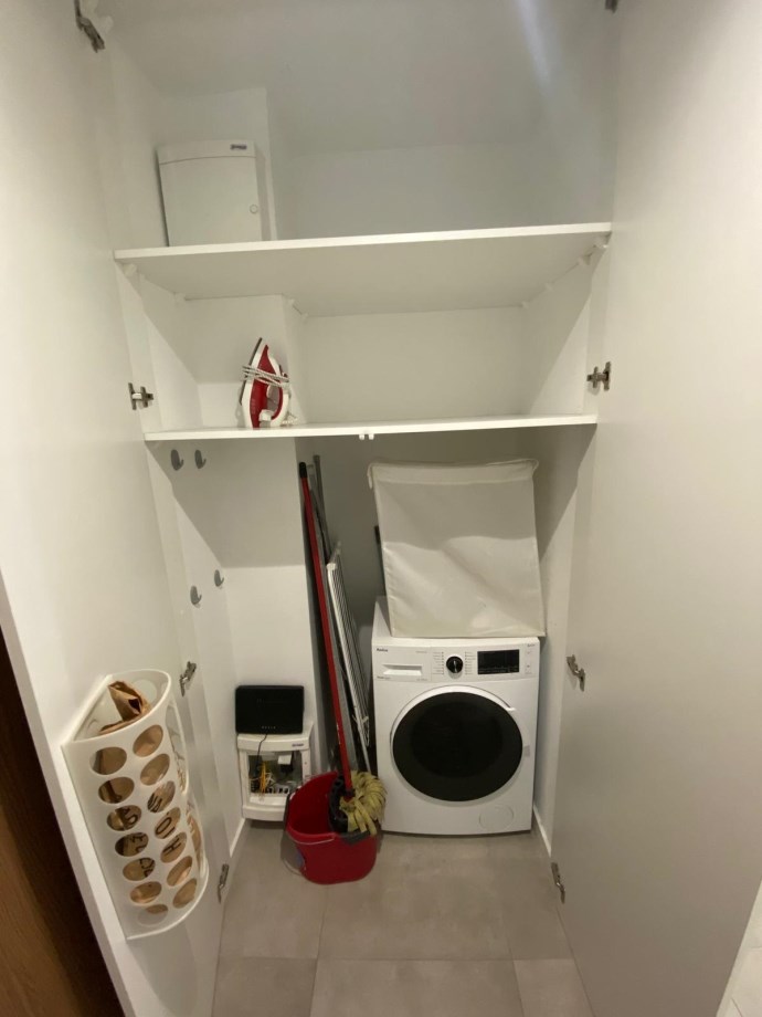 Zaletą jest również olbrzymi taras z wyjściem z dwóch pokoi, a także funkcjonalna bogato wyposażona kuchnia, w przedpokoju schowana pralnia.